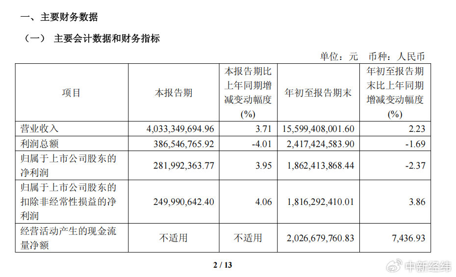 10月30日晚间,海澜之家集团股份有限公司(以下简称:海澜之家;股票代码:600398)发布2025年三季度财报,报告期内,公司实现营业收入155.99亿元,同比增长2.23%;归母扣非净利润18.16亿元,同比增长3.86%。